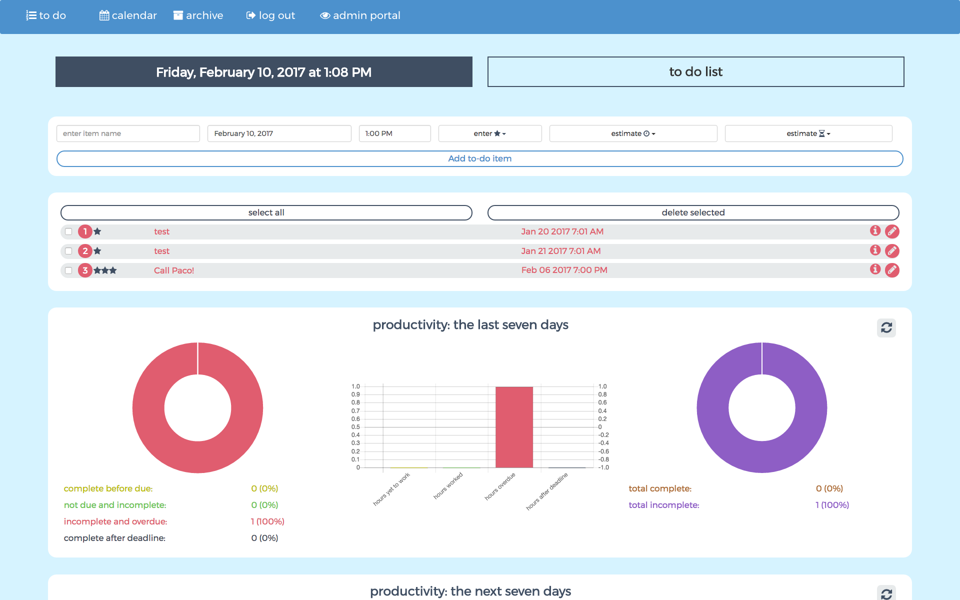 a to do list organizer and prioritizer. Make sure to type in the following credentials in order to peruse the demo:
